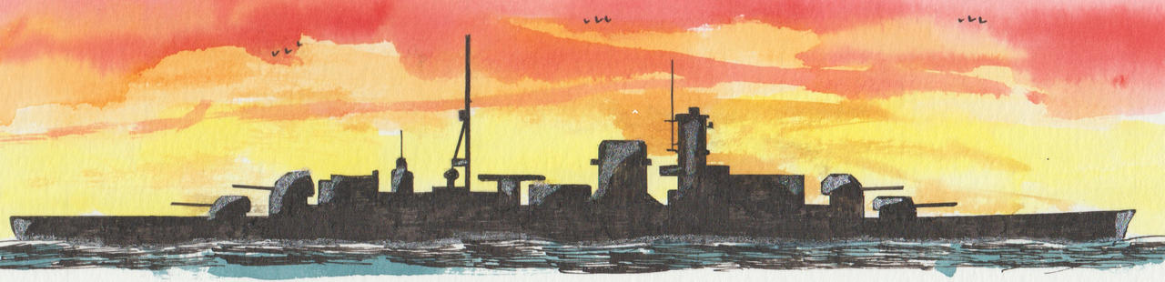3. Of the Admiral Hipper-class heavy cruisers, preceded by Deutschland-class. Laid down by Germaniawerft, Kiel on 23 April 1936, launched on 22 August 1938, commissioned on 1 August 1940, decommissioned on 7 May 1945, surrendered on 8 May 1945, handed over to the USA and sunk on 22 December 1946 during nuclear tests.
