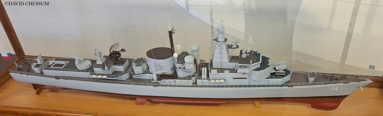 Part of Jacob van Heemskerck-class preceded by Tromp-class succeeded by De Zeven Provinciën-class. Laid down as Hr.Ms. Jacob van Heemskerck by Koninklijke Maatschappij De Schelde, Vlissingen, Netherlands on 21 January 1981, launched on 5 November 1983, commissioned on 15 January 1986, decommissioned on 2 December 2004, sold to Chile, commissioned on 16 December 2005, decommissioned in January 2020 and sunk in 2025.