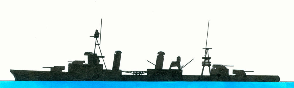 Part of the design process of the USS Pensacola-class (CL-24)-class built under the Fiscal Year 1926 and part of a set of 5 alternative designs presented to the General Board in March 1921. Dimensions 610 (waterline) x 57 (waterline) x 26 feet and a displacement of 10,750 ton. Maximum speed 35 knots with 64,000 ehp, range 8,000 miles/10 knots. Five boiler rooms, 15 boilers.Armament of 8-8” guns (2x3&1x2), 2x3-21” torpedo tubes dk, 8-3” guns and 4-4” anti aircraft guns.(1)