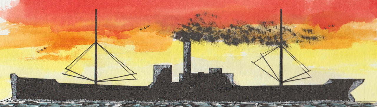 Call sign JKUB. Launched by W. Dobson&Co., Walker yard, Newcastle, England with yard number 132 on 16 February 1904, completed in March 1904 and broken up in 1951. Owner Hungarian Levavnt Steamship Co. Ltd., Fiume 1904-1913, Chine Steamship Co. Ltd. (HG Harper&Co.), Cardiff, Wales 1913-1918, Thordis Shipping Co. Ltd. (J. Slater,), London, England 1918-1919, John Slater Ltd., London 1919, Penmark Shipping Co. Ltd., (D.E. Radcliffe), Cardiff, Wales 1919-1921, L. Chantrier et E. Dubi, Dieppe, France 1921-1924, Morihei Kisen KK, Amagasaki, Japan 1924-1945, Yamamoto Kisen KK, Osaka, Japan 1945-1950 and Japanese government 1950-1951. Homeport Nagasaki, Japan. Gross tonnage 2,515 tons, under 2,158 deck tons, net tonnage 1,856 tons, deadweight 4,100 tons and as dimensions 300.5 x 45.0 x 19.6 x 9’6” (light)-19 (loaded) feet. Reciprocating propulsion, single screw, 150 nhp, speed 8 (cruising)-10.5 (maximum) knots.