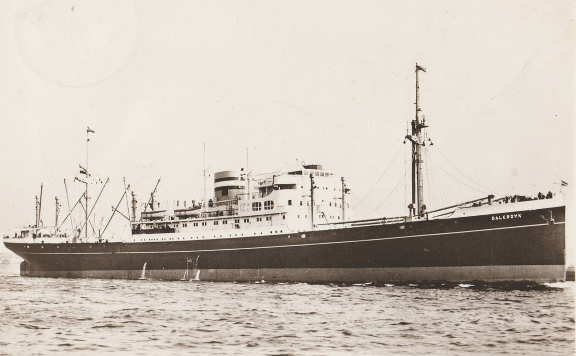 Launched by N.V. Wilton’s Machinefabriek&Scheepswerf, Schiedam, Netherlands with yard number 322 on 17 May 1930, delivered as the Damsterdyk to owner/manager N.V. Nederlandsch-Amerikaansche Stoomvaart Maatschappij 'Holland-Amerika Lijn', Rotterdam, Netherland on 27 August 1930, seized by the German Kriegsmarine since 7 August 1940, manager Hamburg-Amerikanische Packetfahrt A.G., Hamburg, Germany since 9 July 1941, arget for the Luftwaffe in 1942, target for submarines in 1943, damaged during Allied air attack at Kiel, Germany on 5 April 1945. as Dalerdyk owner/manager N.V. Nederlandsch-Amerikaansche Stoomvaart Maatschappij 'Holland-Amerika Lijn', Rotterdam, Netherland since 5 January 1949, as Presvia owner/manager Belvientes Compañia Naviera S.A., Panama since 26 July 1963 and broken up in Japan in 1963.