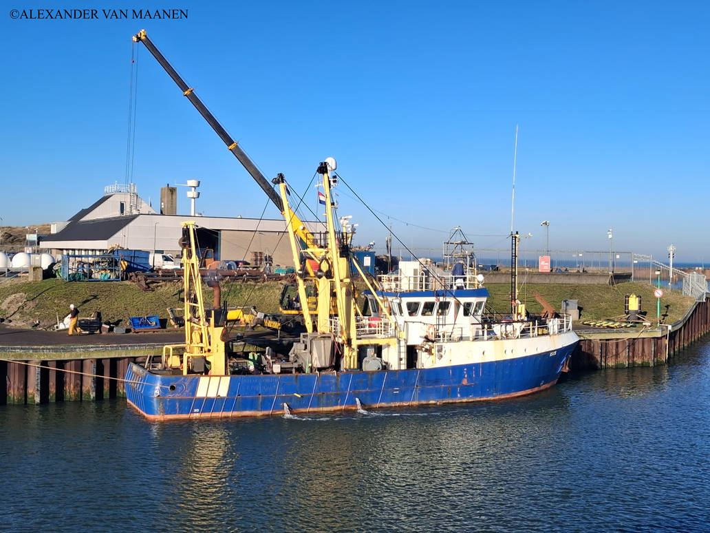 Netherlands-flagged, homeport Scheveningen, IMO 8318180, MMSI 244767000 and call sign PBXD. Built by Damen Shipyard Hardinxveld, Hardinxveld-Giessendam, Netherlands in 1983. Also called a fish farm support vessel. Owned by Rijksrederij/Rijkswaterstaat.